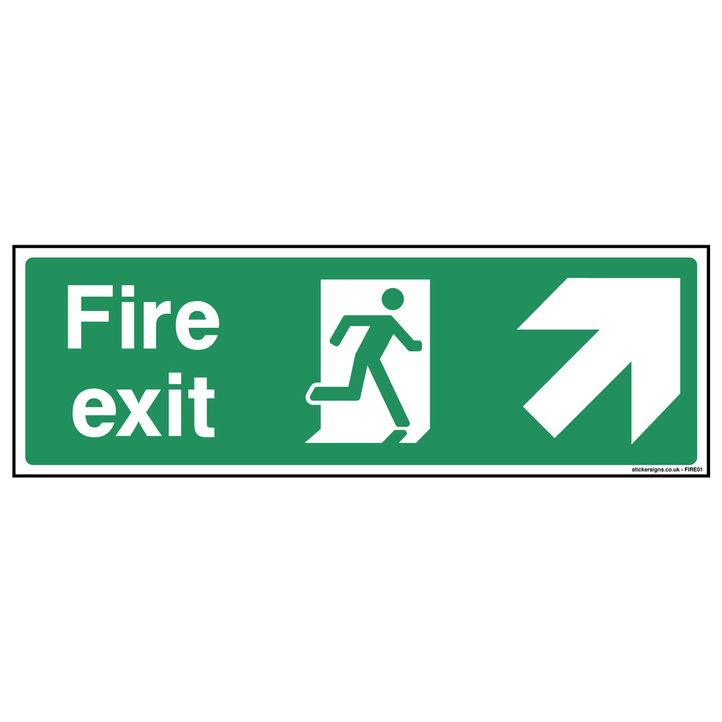 - Clear direction: Bright, bold arrow pointing upper right for instant recognition of evacuation routes.